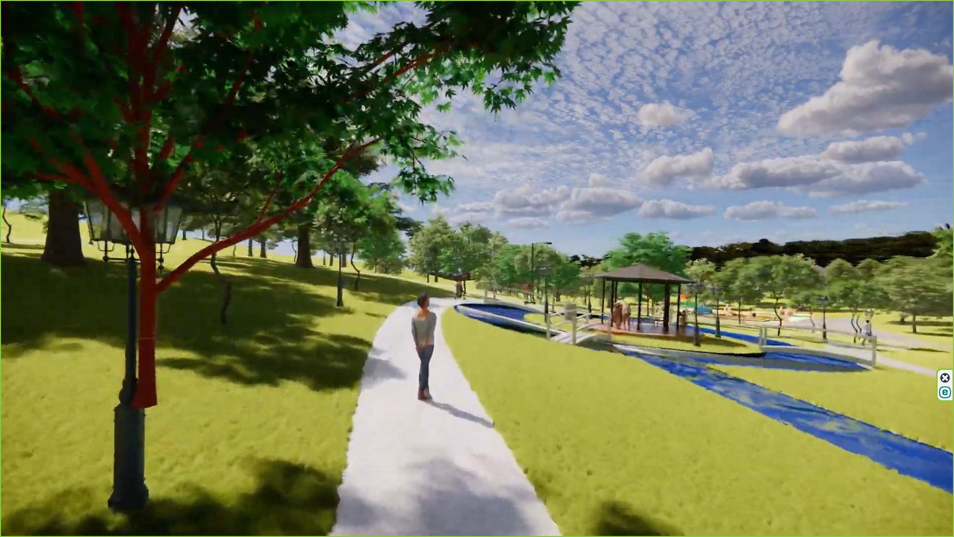 Inmitten von Parks, Spielplätzen und Grillplätzen, mit Wander- und Radwegen entlang eines natürlichen Bachs, bietet Barrio Eden alles, was das Leben lebenswert macht. Sportbereiche und Pavillons laden zur Bewegung oder zum Verweilen ein.